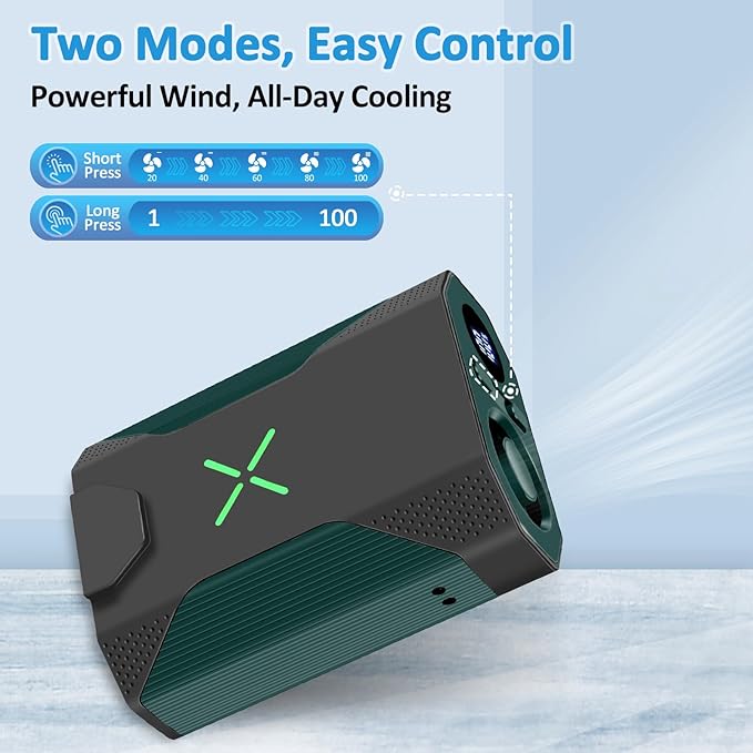 - Mini Waist Clip Fan: This wearable fan adopting 36000RPM brushless high-speed motor, waist clip fan brings you strong wind in 3 seconds in the hot summer. Short press to increase the current gear by 20 speeds (cycle selection: 20-40-60-80-100-0), long press to increment the current gear by 1 speed (cycle selection 1-100 speeds)