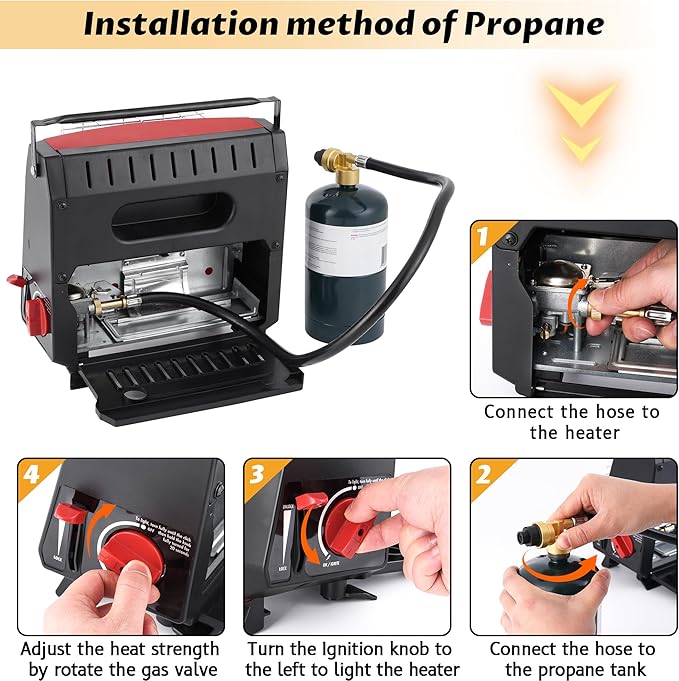 - 🔥【Lightweight Portable Heater 】This compact and lightweight propane heater is designed for easy portability and quick setup, making this portable camping heaters for tents the perfect companion for outdoor activities such as camping, hiking,fishing,hunting, skiing and more.