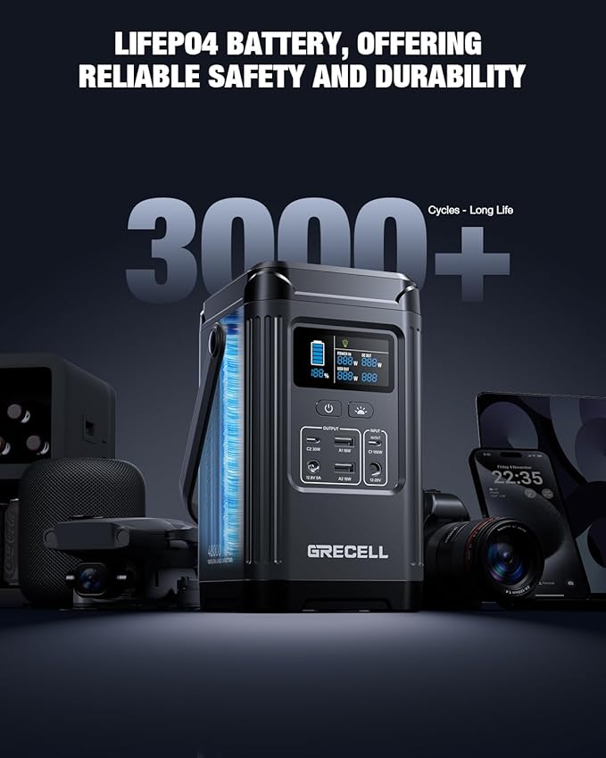 - [FAST CHARGING] GRECELL 240W portable power supply with 153.6Wh/48000mAh capacity, equipped with 5 output ports and 2 input options, supports charging multiple devices. Providing Type-C 100W fast charging to meet various outdoor and emergency power needs.