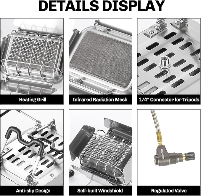 - All-Weather Performance: Built-in 4 windproof panels and pressure regulated valve ensure steady flamesoutput and efficient heating even in windy or sub-zero conditions.