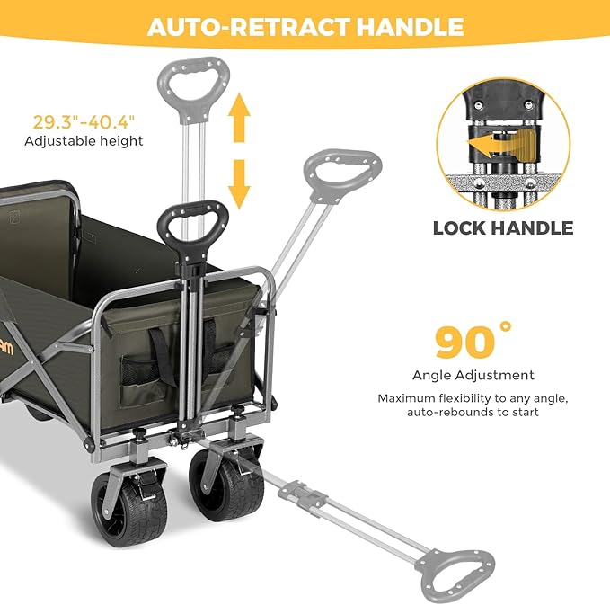 - Special Feature : Adjustable Handle, Big All-Terrain Wheels, Built-In Cup Holder, Extended Tailgate, Locking Caster
