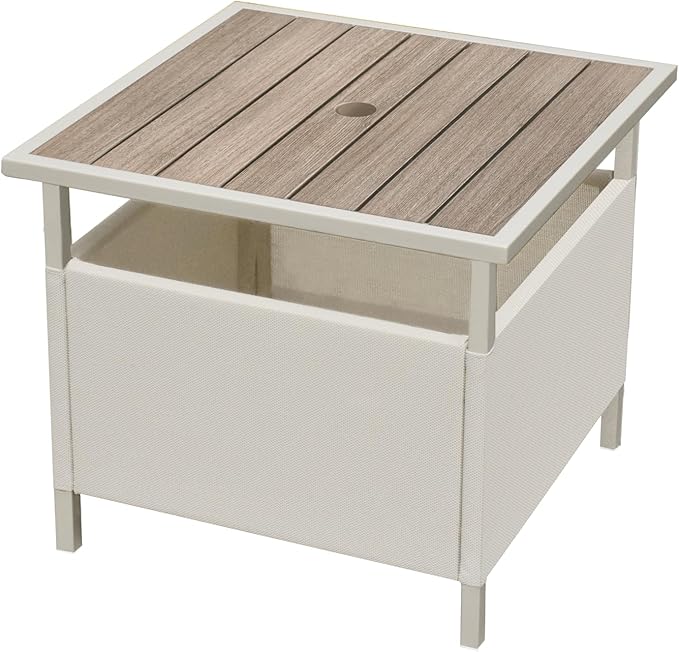 LZRS Adirondack Square Outdoor Side Table with Umbrella Hole, Pool Composite Patio Table,HDPE End Tables for Backyard,Pool, Indoor Companion, Easy Maintenance & Weather Resistant(Wood Like)