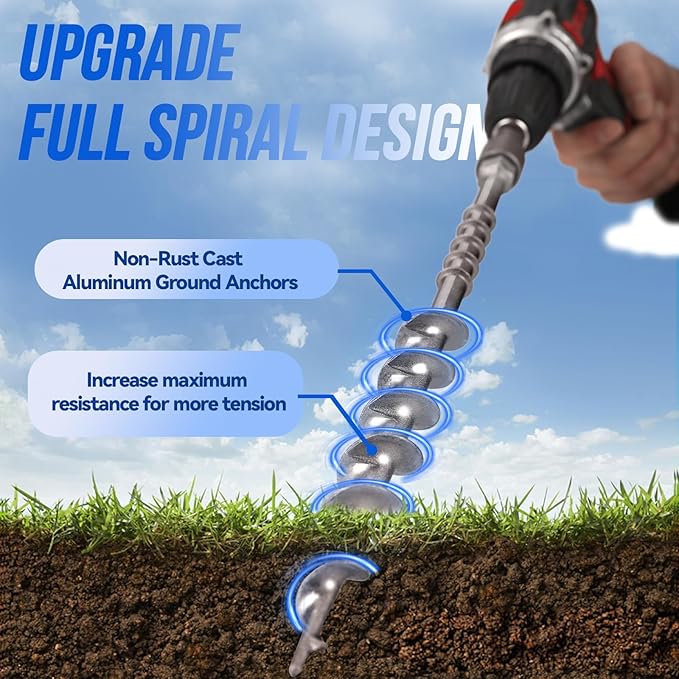 - HEAVY DUTY ALUMINUM: Made from premium aluminium, these screw in tent stakes heavy duty are rust prevention, silvery color, lightweight, safe, and sturdy, ideal for canopy, trampolines, sheds, backyard, swing sets, camping