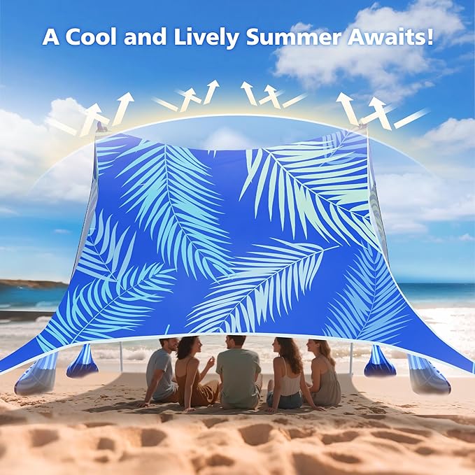 - Advanced UPF50+ Sun Protection - Crafted with UV-blocking Lycra fabric (UPF50+), this beach canopy blocks 98% of harmful rays while reducing heat buildup. Ideal for fishing, lakeside relaxation, or outdoor sports under intense sunlight, offering breathable shade to prevent sunburn.