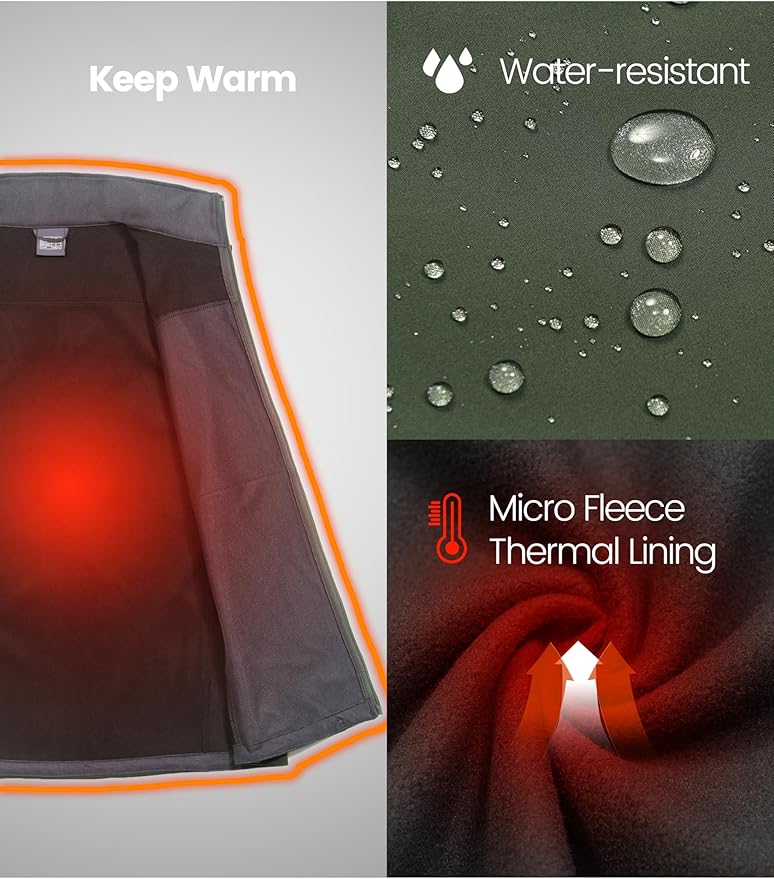 - Water-resistant & Windproof - - The stand up collar and full zip front, combined with well sealed zippers, block chilly gusts and light rain.