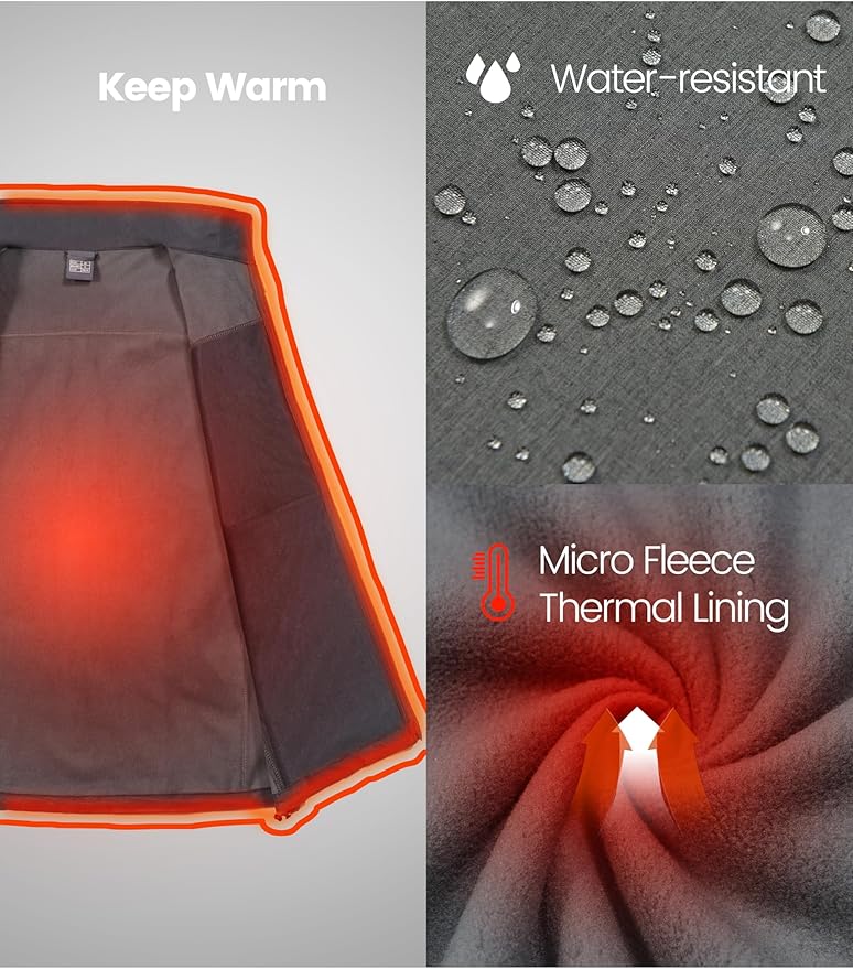 • Water-resistant & Windproof - - The stand up collar and full zip front, combined with well sealed zippers, block chilly gusts and light rain.