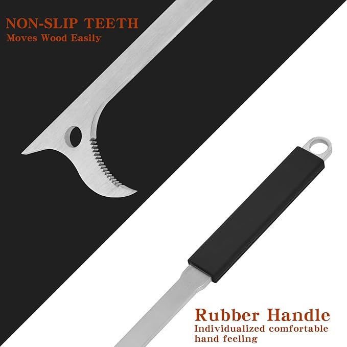 - 2-PIECE FIRE POKER SET: This fire poker set include a 40inch Fire Poker and a 28 inch Log Grabber for fire pit. Help you hook, rake, and push firewood easily when you enjoy your campfire