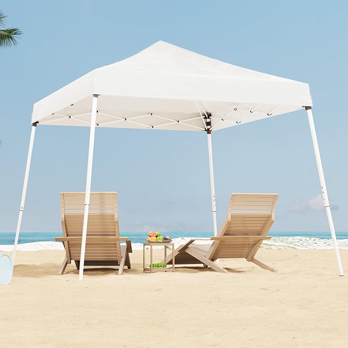 10x10 Pop Up Canopy, 300D Silver Coated White Fabric Outdoor Gazebo, Beach Tent Slant Legs with Storage Bag,Easy Up Sun Shade Shelter Tents with 8x8 Top Cover for Patio,Party