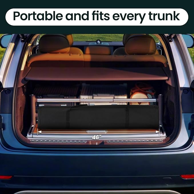 - 【Portable Storage Bag】This instant portable shelter is equipped with a sturdy oxford bag, a carry strap and a zipped opening for quick storage and easy transport. Compact size(46"x8"x8") fits in most car trunks, making it the good partner for outdoor activities