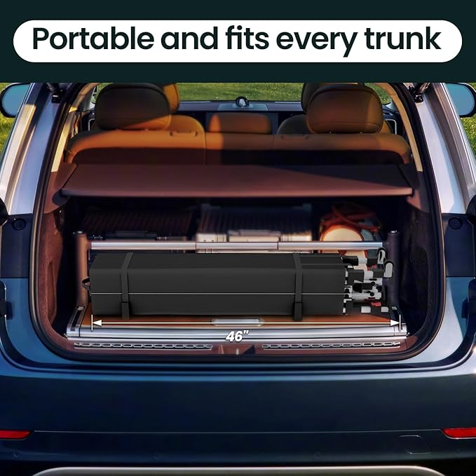 - Compact Packaging with Easy-Moving Wheels: Designed for convenience, this canopy tent 10x10 folds into a compact size(46”x8.5”x8.5”), fitting easily into most car trunks. The detachable rubber wheels make transportation a breeze, ideal for parties, BBQs, camping, market, or beach shade