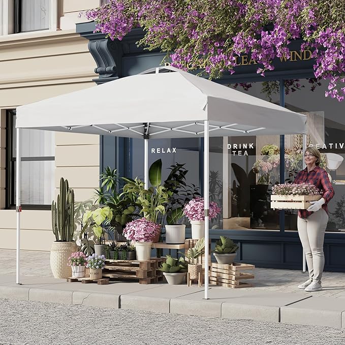 Shades 10x10 Pop Up Canopy with One Push Setup,Heavy Duty Beach Tent with Wheels for Easy Moving, Sun Shelter for Parties,Events, Outdoor Gazebo with 420D Coated Waterproof White Fabric