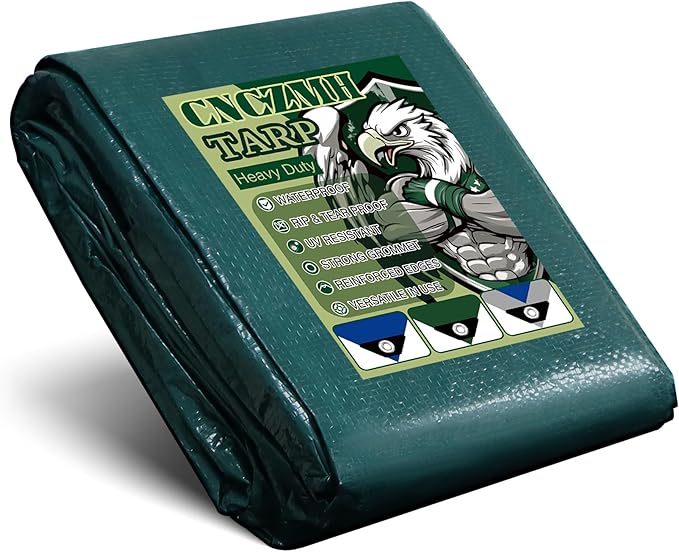 - Finished Size: Heavy duty double-sided green small tarp waterproof, 8 mil 6x10 feet thick high-density polyethylene (HDPE) fabric, UV resistant, dustproof, reinforced strength and resilience, non-toxic, non-harmless, no odor, no harmful chemicals