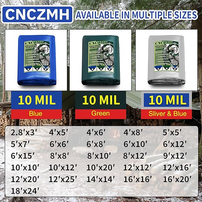 - Finished Size: Heavy duty double-sided Silver/Blue small tarp waterproof, 10 mil 4x8 feet thick high-density polyethylene (HDPE) fabric, UV resistant, dustproof, reinforced strength and resilience, non-toxic, non-harmless, no odor, no harmful chemicals