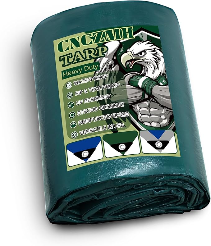 - Finished Size: Heavy duty double-sided green small tarp waterproof, 16 mil 10x20 feet thick high-density polyethylene (HDPE) fabric, UV resistant, dustproof, reinforced strength and resilience, non-toxic, non-harmless, no odor, no harmful chemicals