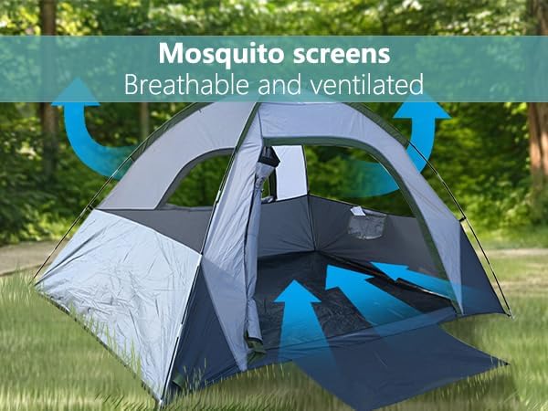 - Unique Design--B3 Screen Window and Ground Vent: The tent is equipped with a B3 screen window at the top and a ground vent at the bottom, ensuring smooth air circulation and effectively preventing the feeling of stuffy heat, while also blocking mosquitoes from entering, allowing you to breathe fresh air in nature. The wide D-shaped door design not only facilitates access, but also brings a broader view, allowing you to enjoy the surrounding beauty at any time.