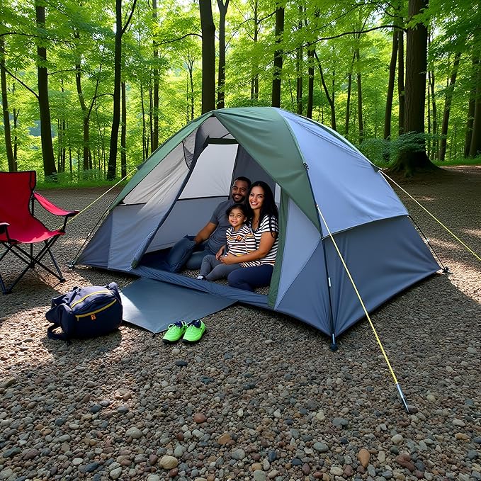 4 Person Dome Camping Tent, Double Layer Waterproof, Removable Rain Fly, for Outdoor Hiking, Fishing