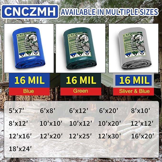 - Finished Size: Heavy duty double-sided green small tarp waterproof, 16 mil 10x12 feet thick high-density polyethylene (HDPE) fabric, UV resistant, dustproof, reinforced strength and resilience, non-toxic, non-harmless, no odor, no harmful chemicals