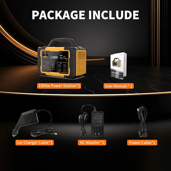 - 【High Performance Power Supply】 Equipped with a 1024Wh lithium-ion battery pack, the 1000W portable powered generator features 4 pure sine wave AC outlets that provide stable and safe 1000W power. Upgraded BMS provides built-in overload, overcharge (automatically stops charging when the device is full), and short-circuit protection which helps to keep the power station's temperature safe.