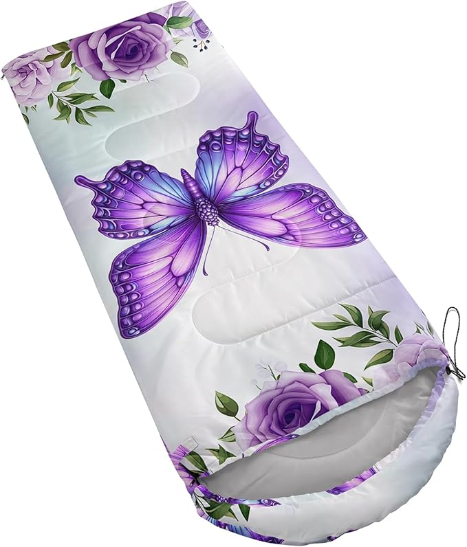 - 【Fashion Design】This camping sleeping bag is designed with butterfly and floral pattern.This sleeping bag for girls is lightweight and easy to carry.As backpacking essentials for hiking and camping outdoor,this sleeping bag is a great choice.