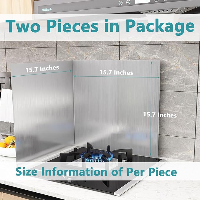 - Our package includes 2 pieces kitchen protectors for cooking, each size is 15.75 x 15.75 inches. You can group them into 2 or 3 and 4 sides according to your own needs for using, so it's very convenient for you to adjust the combination.