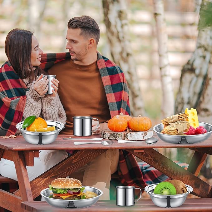- Reliable Material: these camping plates cups and bowls set are made of quality stainless steel, non toxic, rust proof, scratch proof, not easy to break or deform, and are strong enough and reusable to provide you with long term service