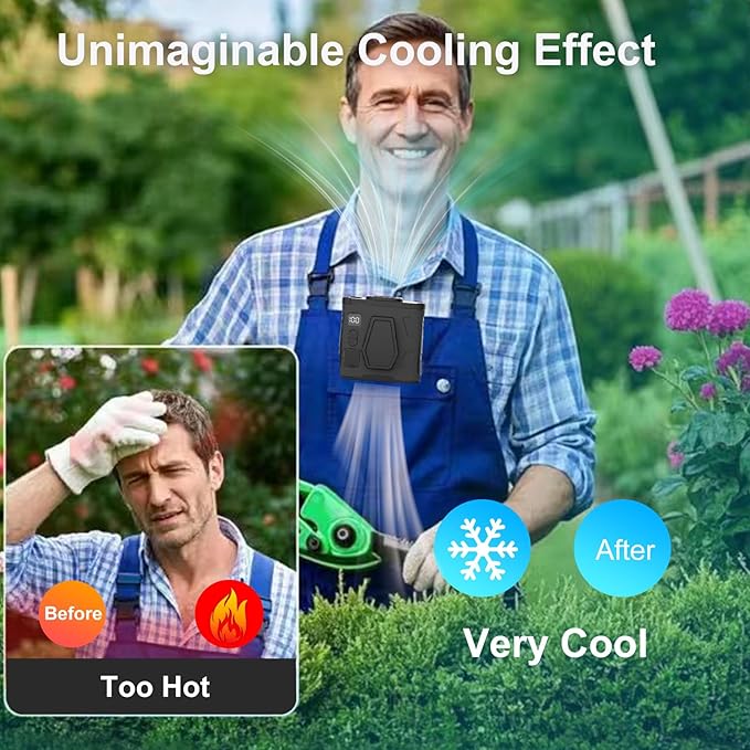 - High-Velocity Cooling Motor: Rapid personal cooling: Upgraded brushless motor (16,000 RPM) delivers 18mf/s high-velocity airflow for immediate cooling relief. Generates up to 2x stronger airflow than basic waist fans