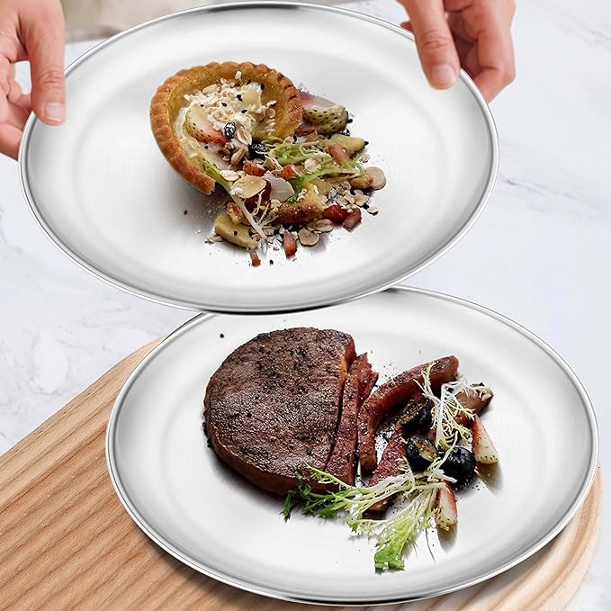 - Versatile use, unbreakable stainless steel plates for kids serving dishes set is safe to use in freezer, oven for your different needs, suitable for indoor and outdoor using, work well in serving pancakes steak sandwich pasta pizza salad dessert snack, for camping party barbecue picnic, also an ideal gift for your family and friends