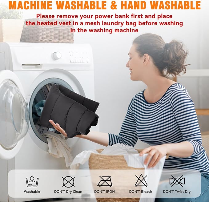 - 【Easy Care & Versatile Use】Machine or hand washable—simply remove the battery and cable, secure pockets, and wash gently in a laundry bag. Air dry only. Perfect for daily wear, skiing, hiking, camping, and more. Its stylish unisex design makes it an ideal gift for holidays like Christmas and Thanksgiving.