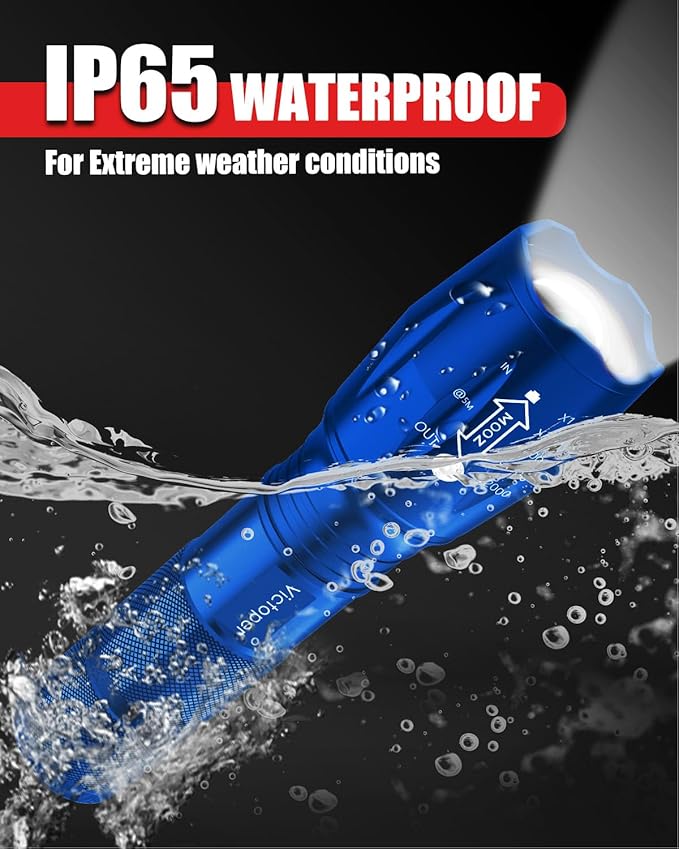 Victoper LED Flashlight 2 Pack Blue, Bright High Lumens Tactical Flashlights High Lumens with 5 Modes, Waterproof Zoomable Flash Light for Outdoor, Gifts for Father's Day Camping Essentials Gear