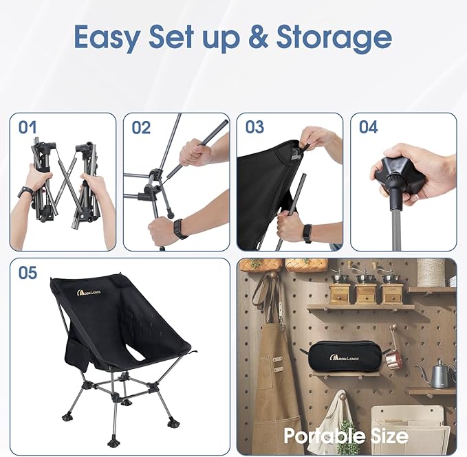 - Lightweight Comfort Anywhere: Compact and easy to carry, this Moon Lence backpacking chair effortlessly accompanies every journey. No tools required—just a few simple steps for quick setup, giving you instant comfort during adventures or urban explorations. Durable yet thoughtfully designed, it's both a reliable outdoor companion and a heartwarming holiday gift