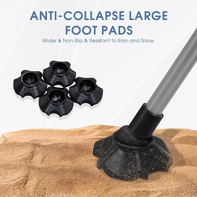 - Premium Durability & Stability: Crafted with aircraft-grade 7075 aluminum alloy, the frame achieves high strength-to-weight ratio. Reinforced with quad-leg base and triple-lock joints, it ensures 360° stability on uneven terrain. The 900D anti-tear Oxford fabric withstands 330lbs loads, paired with non-slip rubber feet for secure placement on wet grass or rocky surfaces