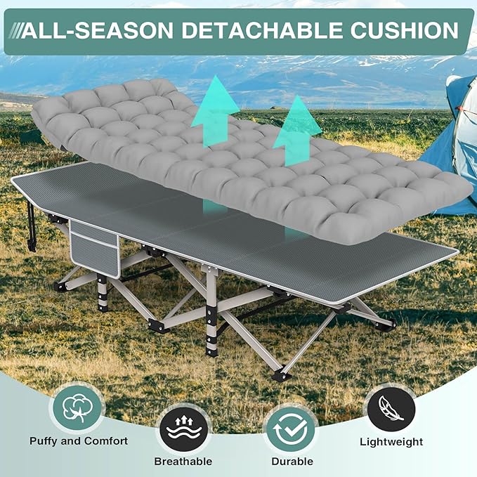 ZENPETIO Camping Cot for Adults, Portable Foldable Camp Bed with Mattress & Carry Bag, Outdoor Sleeping Cots for Camping, Travel, Home, Office, 2025 Updated