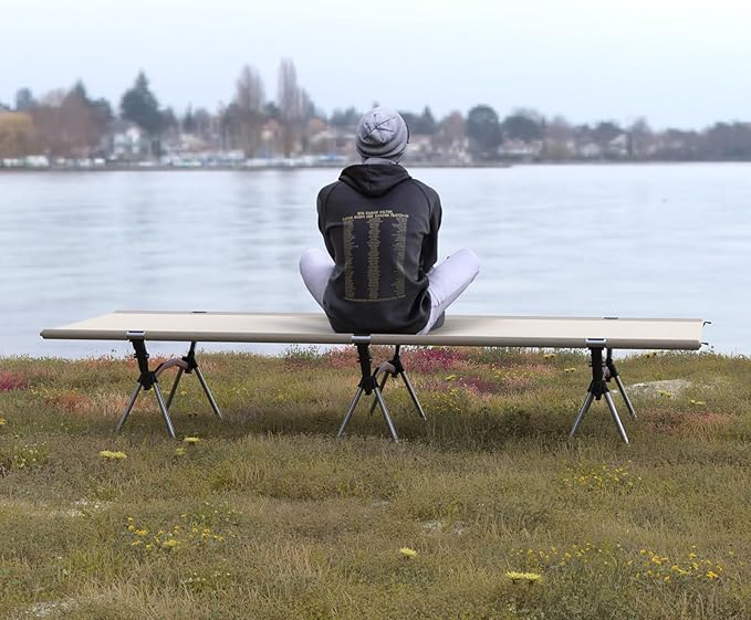 - Sturdy & Stable-Built with aerospace-grade 7075 aluminum frame bars and legs, this camping cot features a reinforced dual-tube design and an arched square tube base for unbeatable stability—supporting up to 396 lbs without compromise.