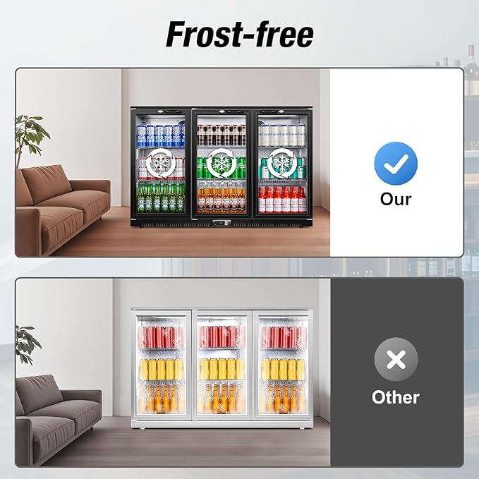 - 12 CU. FT. 53.15 INCH PERFECT FIT FOR ANY SPACE: With a counter height of 35.43 inches, beverage fridge with Three Glass Doors is designed to fit under most counters seamlessly. It’s the ideal beverage refrigerator for your home bar, kitchen, or entertainment space, offering both style and functionality in one sleek unit.