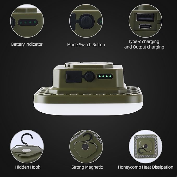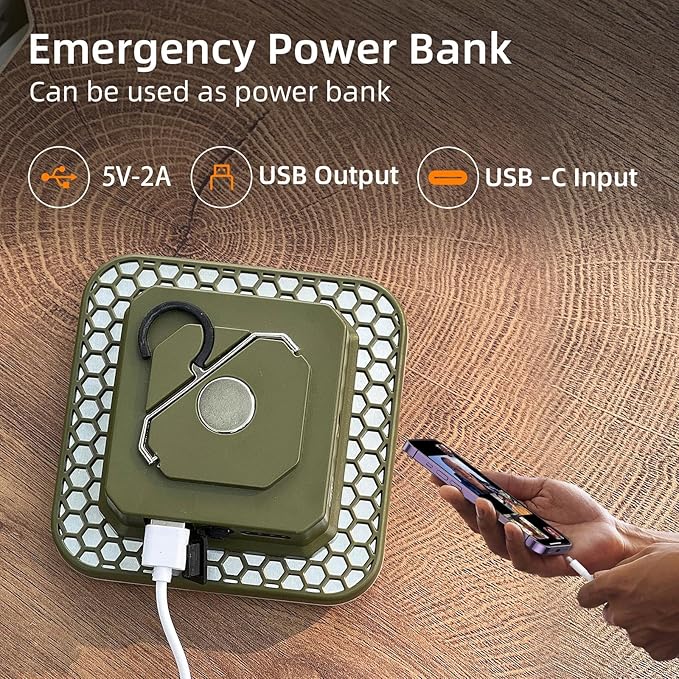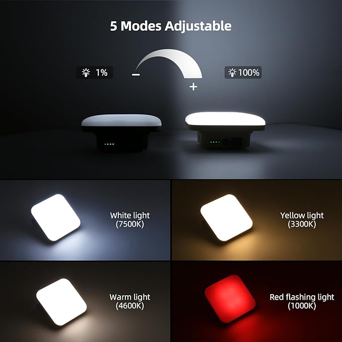 - Innovative Square Design with Enhanced Portability: The square shape offers a modern aesthetic while the built-in hidden hook and magnetic base provide versatile mounting options. Hang it in your tent or attach it to metal surfaces for hands-free convenience during your camping adventures.