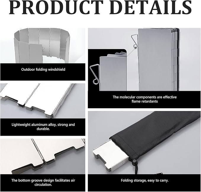 - Material: Constructed from quality aluminum alloy, this windscreen is built to endure the challenges of outdoor cooking. Its robust material resists heat and wear, providing long-lasting reliability for all your camping adventures.