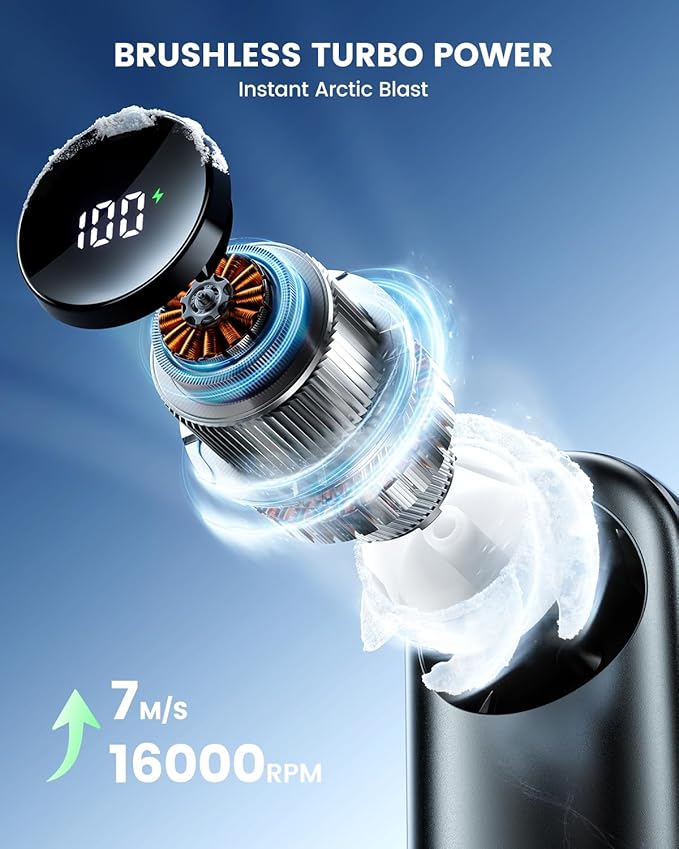 - High-Speed Turbo Cooling: The handheld fan's brushless motor delivers 16,000 RPM speeds and a minimum airflow of 7 m/s for instant cooling. Perfect for beating summer heat - enjoy a refreshing breeze anytime, anywhere.