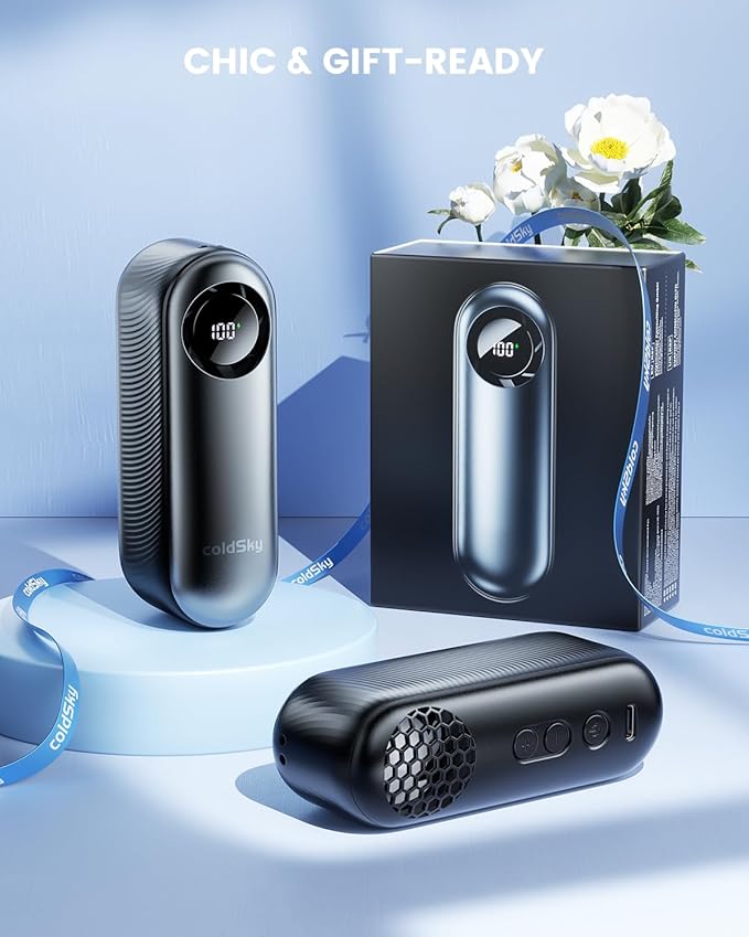 - Ultra-Portable Mini Fan: The coldSky portable fan fits comfortably in your palm and weighs just 5.8oz—light enough to toss in your bag or pocket for instant relief whether you're traveling, shopping, or out for the day. Plus, the included lanyard allows for convenient hands-free use.