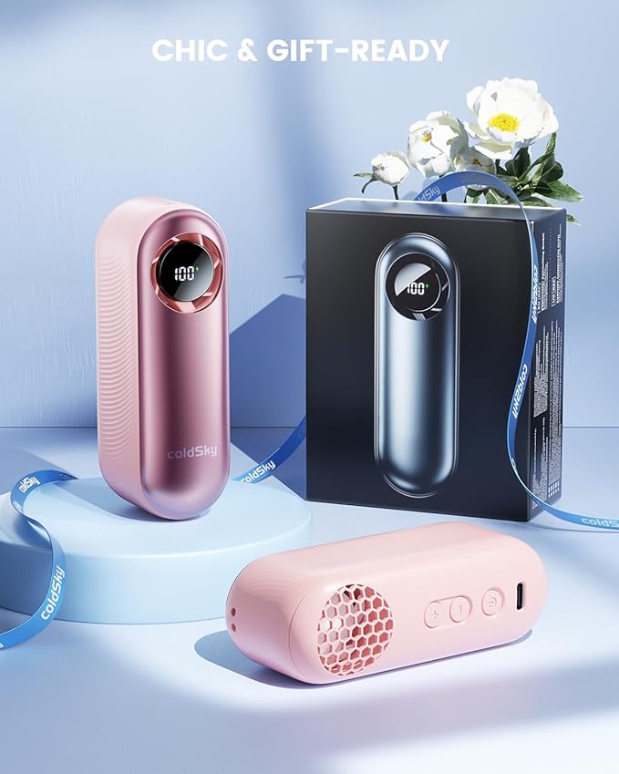 - Ultra-Portable Mini Fan: The coldSky portable fan fits comfortably in your palm and weighs just 5.8oz—light enough to toss in your bag or pocket for instant relief whether you're traveling, shopping, or out for the day. Plus, the included lanyard allows for convenient hands-free use.