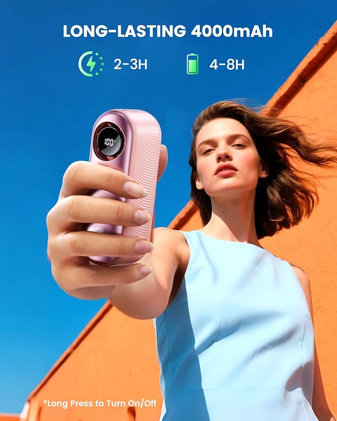 - Long-Lasting and Fast Charging: Powered by a 4,000mAh battery, this small fan delivers 4-8 hours of continuous cooling (runtime varies by speed setting) and fully recharges in just 2-3 hours via USB-C. Ideal for travel, picnics, or daily commutes—say goodbye to frequent charging!