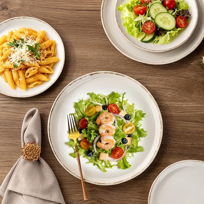 - DOUBLE GLAZE AND SCRATCH RESISTANT:Our dishes are fired at 2350℉ for 13 hours making it formimg a sturdy and durable scratch resistant glaze, no need to worry about scratches from your forks or knives.