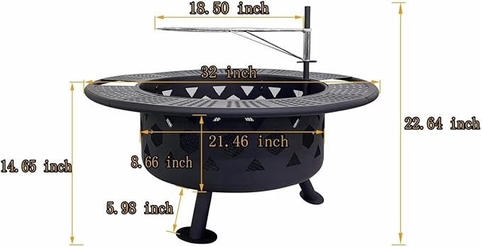 - Help Warm Up: With a specification of Dia 32"x 23" H, this round fire pit is suitable for 3-8 person camping, bonfires, barbecues and backyard gathering. Dancing flames create a warm and bright atmosphere, letting you have a happy gathering time with friends and family.
