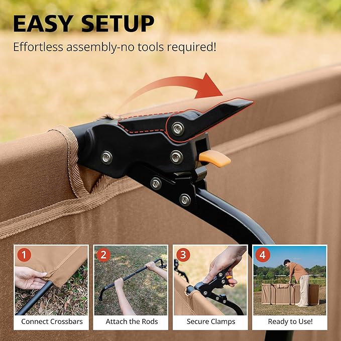 - Quick & Easy Setup – Thanks to the innovative lever-handle structure, setup takes as little as 1 minute once you're familiar with it. Simply position the two long support rods and press down to lock the legs into place securely and efficiently.