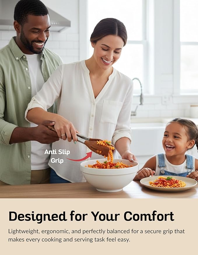 - Feels Right in the Hand, Right from the Start: Balanced, lightweight, and smooth to the touch, these tongs are made to feel like an extension of your hand. Whether you’re tossing greens or flipping shrimp, you’re always in control.