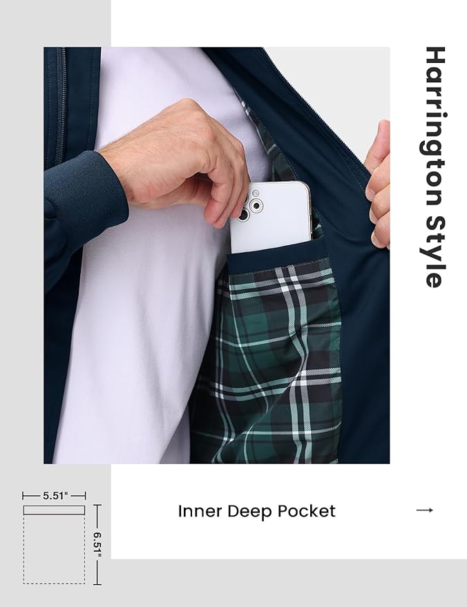 - 【Classic Plaid Lining】This men's full zip lightweight jacket features the classic design of the HARRINGTON on the inside. The integration of quality and fashion.