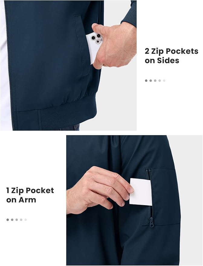 • 【Occation】This men's lightweight jacket is suitable for wearing on cool spring and autumn nights or in the morning, It is an Ideal outfit for Sports, Mechanic Work, Traveling, Golf, and other outdoor activities.