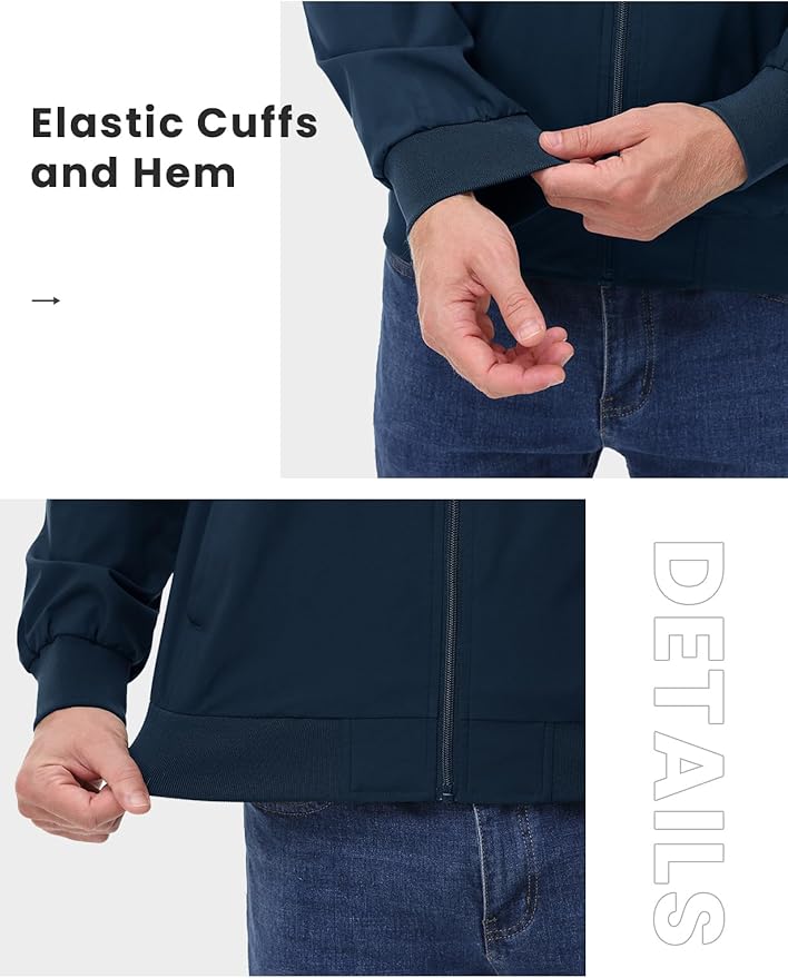 • 【Windproof & Water-Resistant】On rainy or Windy weather days, men's lightweight jackets are water-resistant and effectively prevent rainwater from penetrating, perfectly adapting to weather changes.
