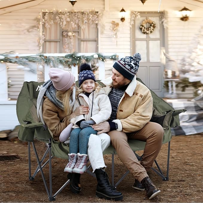 - Personalized Design: The camping loveseat features 2 large and adjustable cup holders for your favorite beverage, it ensures premium comfort in every winter moment. Enjoy the extra room of this oversized camping couch.