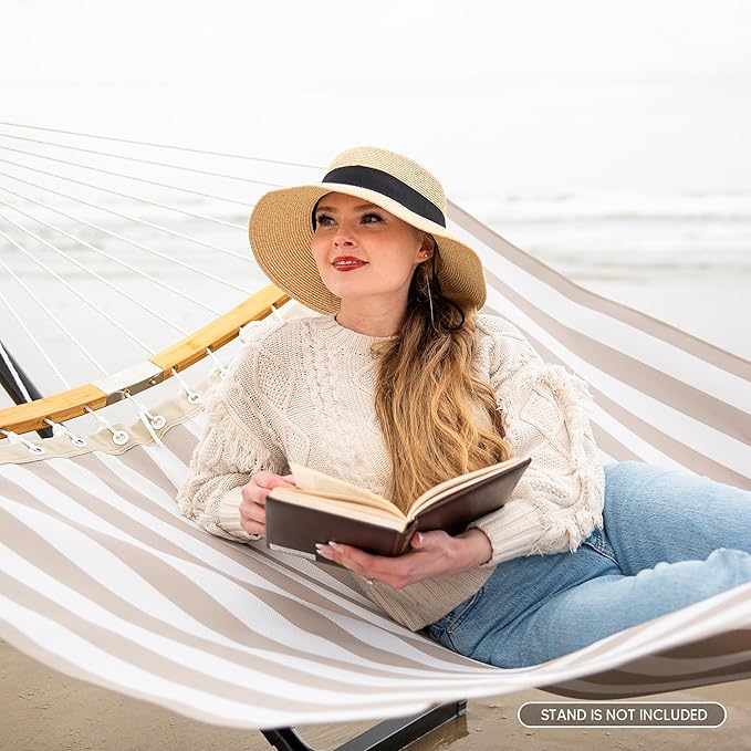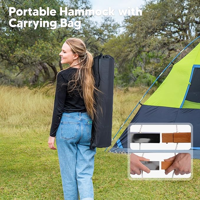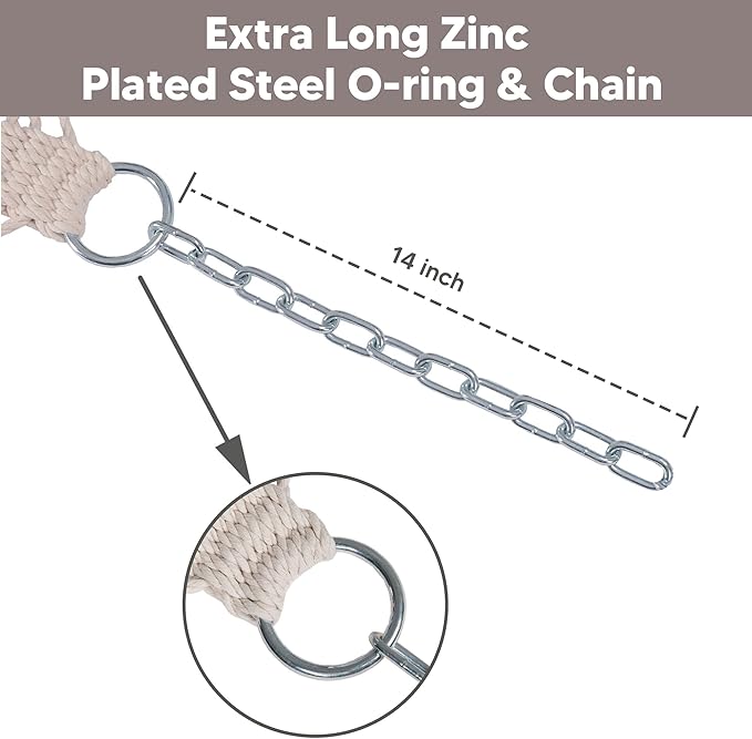 - Easy to Use: Features 14 inch chains, this two person hammock can be hung indoor or outdoor. It’s perfect for bedroom, poolside, garden, patio, backyard, balcony, and many else. A carrying bag is included, so it’s easy to store and take it for a trip. Feel free to contact us if you have any questions during use within one year of purchase. We are always here to help