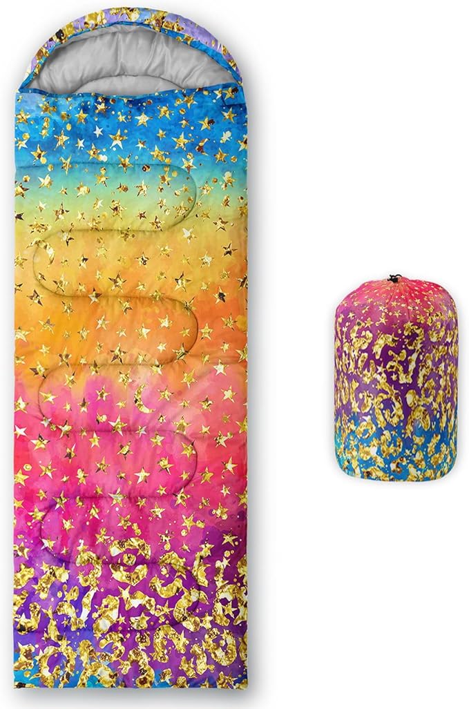 - SUITABLE:The sleeping bag can be used for 3 Seasons.SIZE:90.5"L x 31.5"W Suggenal extreme temperature: 41 ℉ -77 ℉.Applicable in a variety of scenarios,such as Travel camping pajamas party,It's very suitable for you to travel with your children.Half-circle hood with adjustable drawstring,which can keep you warm and prevent your humidity